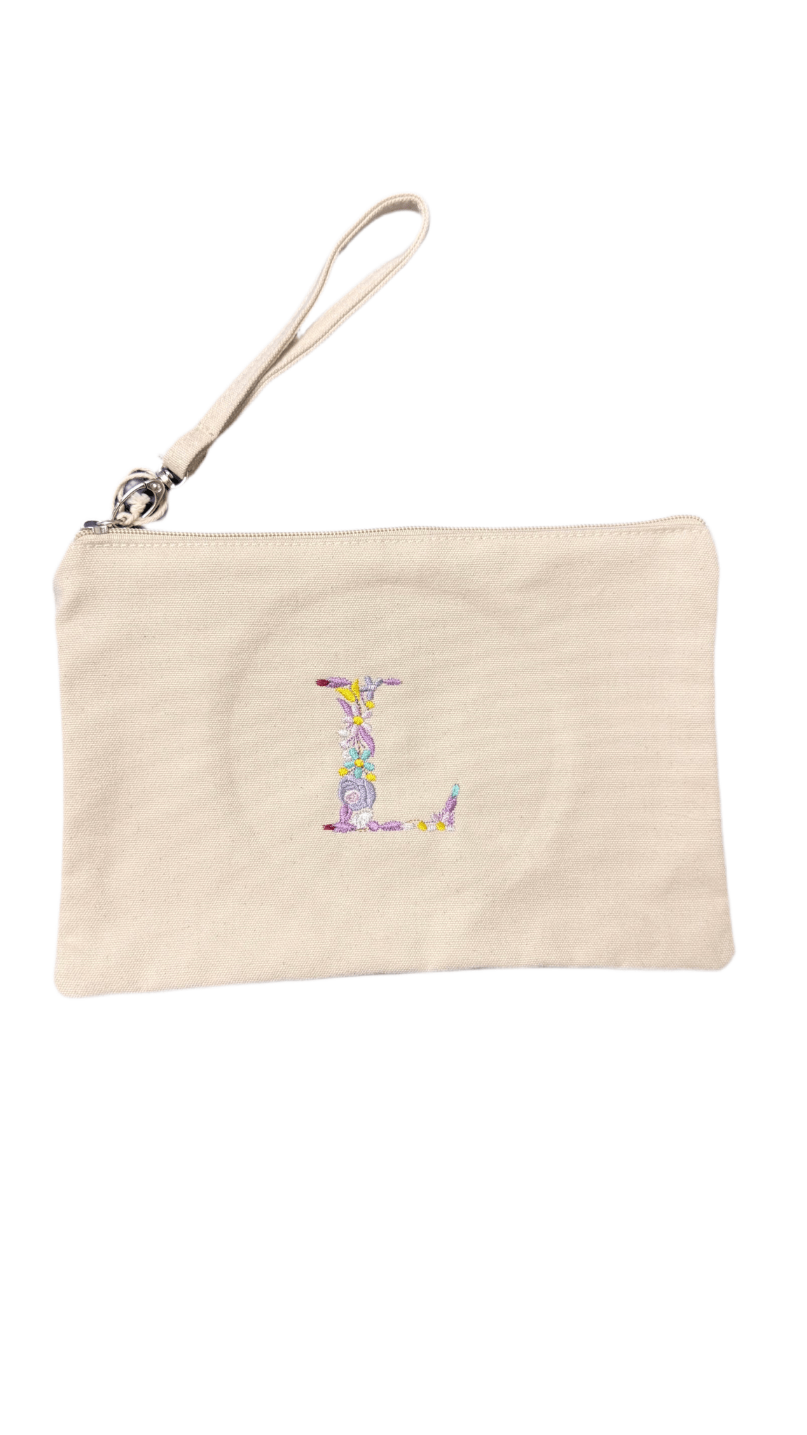 Bolsito de mano con inicial floral bordada