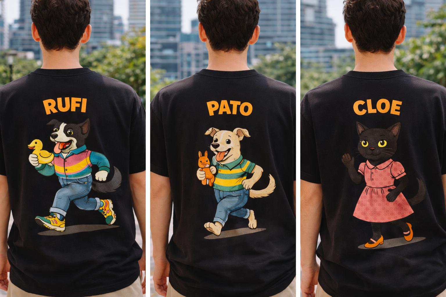 Haz que tu perro, gato o mascota favorita se convierta en el protagonista de una camiseta totalmente única. En Impresión y Regalos 3D transformamos la foto de tu mascota en una ilustración personalizada, reflejando su carácter: jugando, corriendo, posando… o simplemente siendo irresistible.